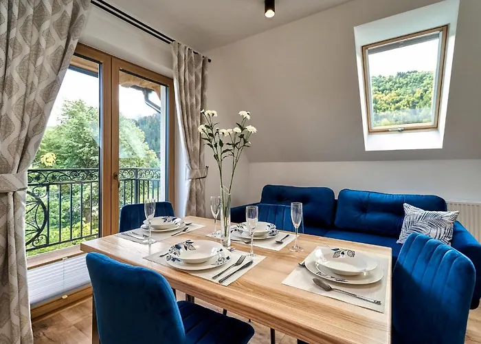 El Góralska Strefa Apartamento Kościelisko ofrece vistas a las montañas y una ubicación a aproximadamente 4 km del Remonte Szymoszkowa. El apartamento está equipado con un jacuzzi y una sauna, que crean un ambiente más agradable para los huéspedes.